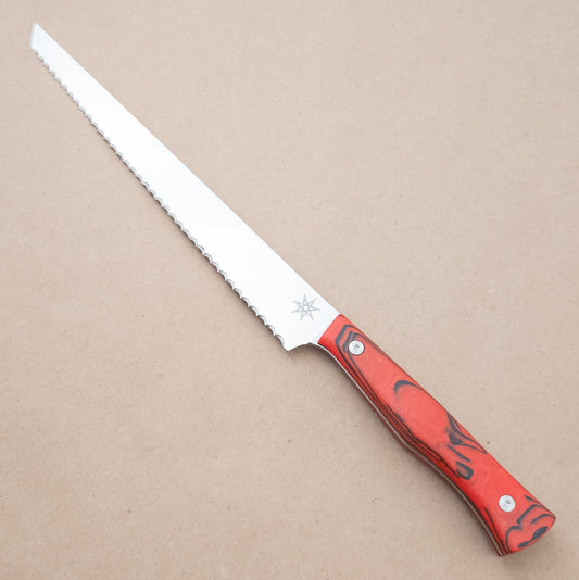 9"Town Cutler Culinary 2.0 Bread - Red and Black Burl G-10 Handle