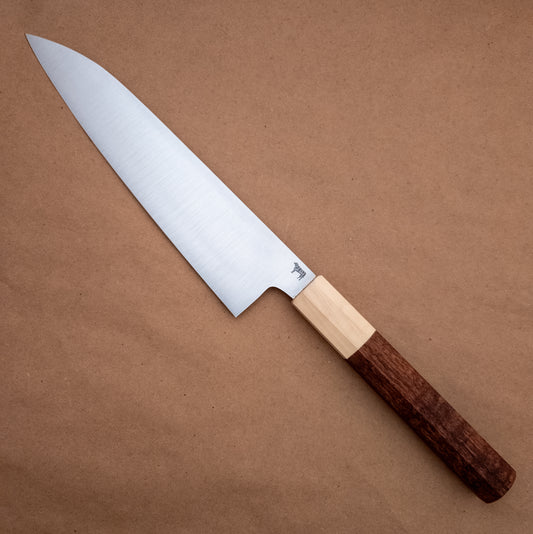 210mm Rowland Cutlery W2 Gyuto Yellowbox Burl Wa Handle