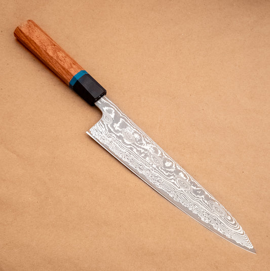 210mm Rowland Cutlery W2 Gyuto Yellowbox Burl Wa Handle