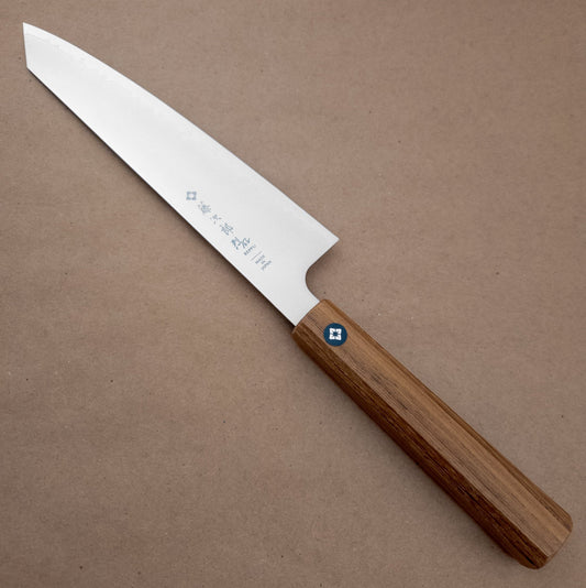 Kiritsuke and Bunka knives are blades that feature a distinctive angled tip. Sometimes referred to as a reverse tanto or K-tip, these knives excel where intricate work with smaller ingredients is required- think shallots or quail. Coming in all sizes, Kiritsukes and Bunkas are the best Japanese knives for kitchens where delicate work or immense style are of utmost importance.