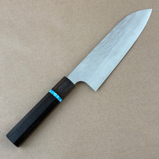 170mm Nigara XEOS Damascus Wa Santoku w/ Turquoise