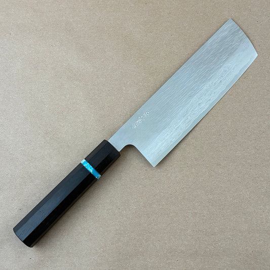 165mm Nigara XEOS Damascus Ebony Wa Nakiri w/ Turquoise