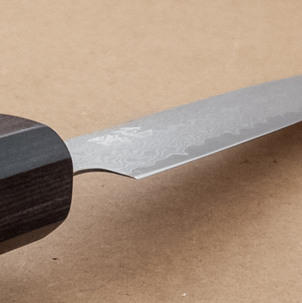 SUNCRAFT knives are made in historic Seki City, Japan, by a family owned manufacturer since 1948. The SENZO Black Damascus series showcases traditional Wa-Bocho tapered octagonal handles that, despite their simplicity, feel warm and natural in the hand. Every knife's Damascus pattern is unique, making this a very specially crafted line.