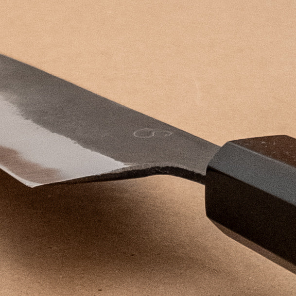 These blades have been tuned up in-house by Ryan Swanson, our lead sharpener and founder. These updated grinds have been adjusted from a Hamaguri, or convex geometry, to a more traditional flat bevel shape. The blades are then polished with a Kasumi finish into mirrored, Migaki core steel. The result is a beautifully refinished, hand forged blade with outstanding performance and ease of sharpening. You can compare this product to the original listing here.
