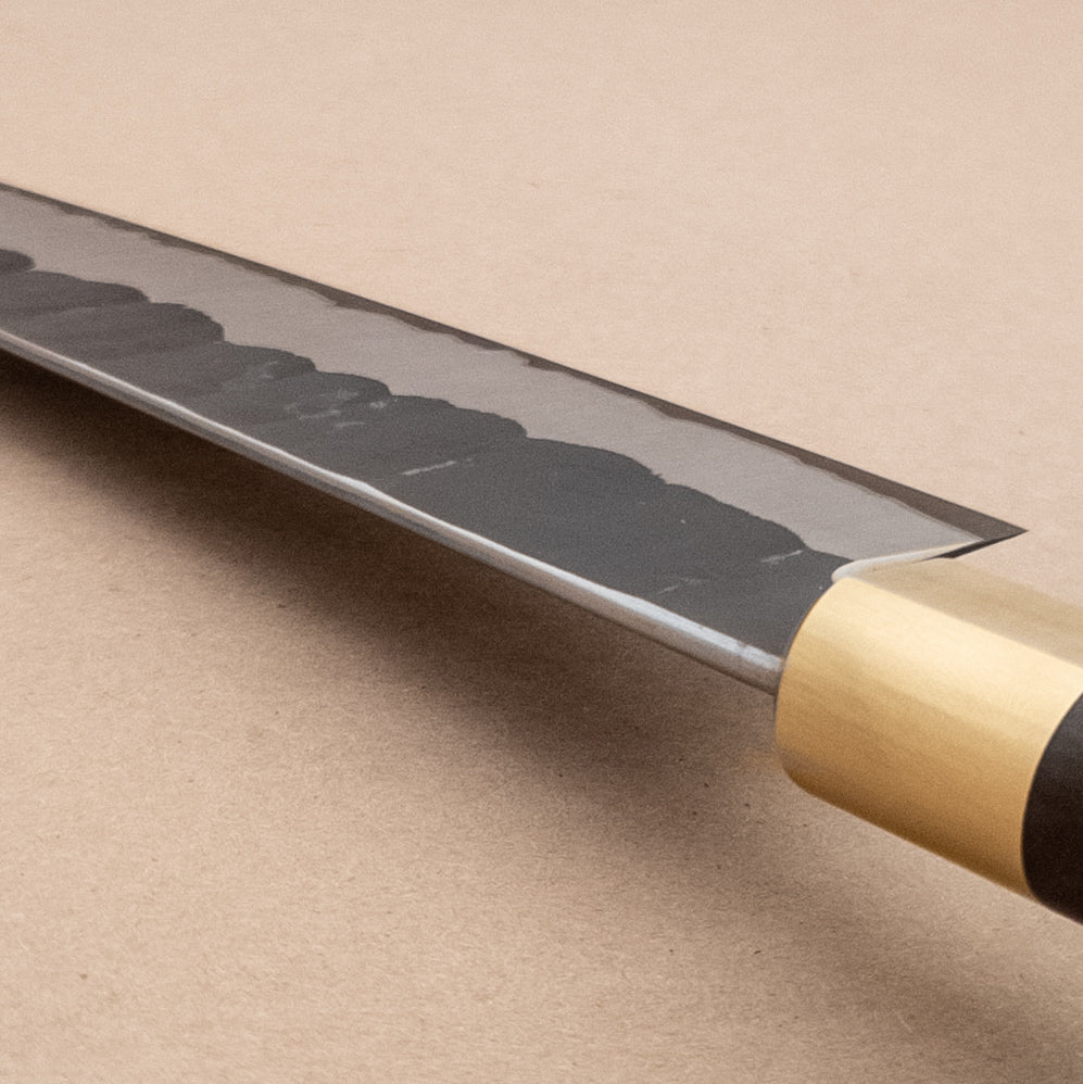 Each blade is made from Takefu Aogami Super steel, clad in stainless steel for protection, with a forged distal taper. Handles combine a CNC-machined brass ferrule with stabilized, locally sourced walnut for balance, durability, and timeless feel.