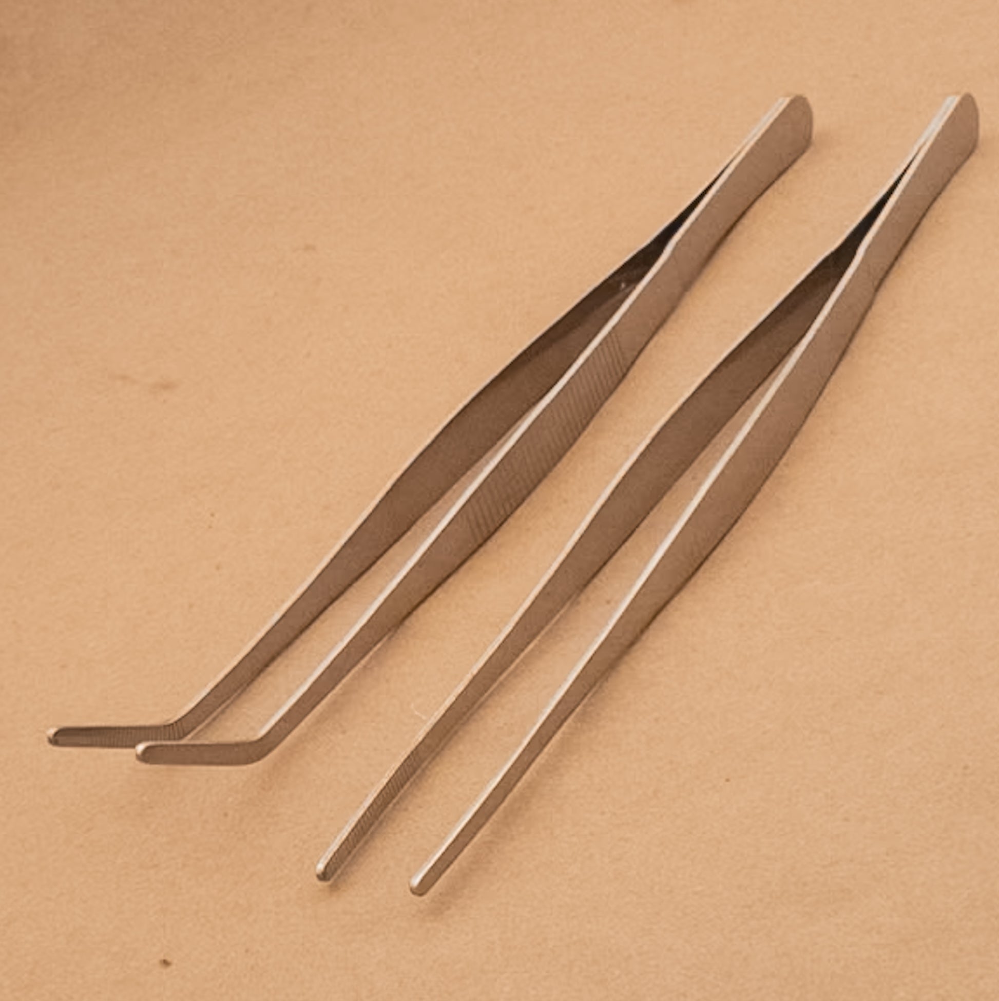 Lightweight and easy to handle, these tweezers offer a very high level of control while cooking or plating your dishes or even pulling a single string of pasta to test for doneness. Two sizes and shapes available; pointed or straight, small (7") or large (10").